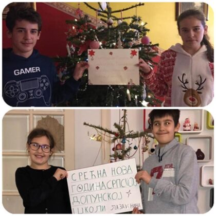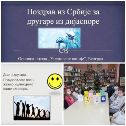 Магична атмосфера празника ове године повезала је ученике основних школа из Србије и Француске. Ђаци четвртог разреда ОШ „Уједињене нације” из Београда послали су новогодишње честитке вршњацима допунске наставе у Француској, који су им узвратили божићним честиткама. Акција је реализована у сарадњи са Културним центром „Чукарица”, а учествовало је преко 80 ученика и 12 наставница из обе земље. Многе честитке прерасле су у писма испуњена шареним дечјим жељама, топлином, искреношћу и жељом за упознавањем.