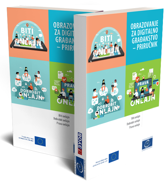 Приручник „Образовање за дигитално грађанство“ је практичан водич за наставнике, стручне сараднике и родитеље, са циљем да оснажи децу и младе да буду активни, одговорни и безбедни у дигиталном простору. Он обухвата три целине: Бити онлајн (приступ, учење, креативност, медијска и информациона писменост), Добробит онлајн (етика, емпатија, здравље, добро стање, комуникација) и Права онлајн (учешће, права и одговорности, приватност и безбедност, потрошачка свест). Свака целина садржи објашњења појмова и ризика, као и конкретне сценарије и активности за рад у учионици и са породицом.