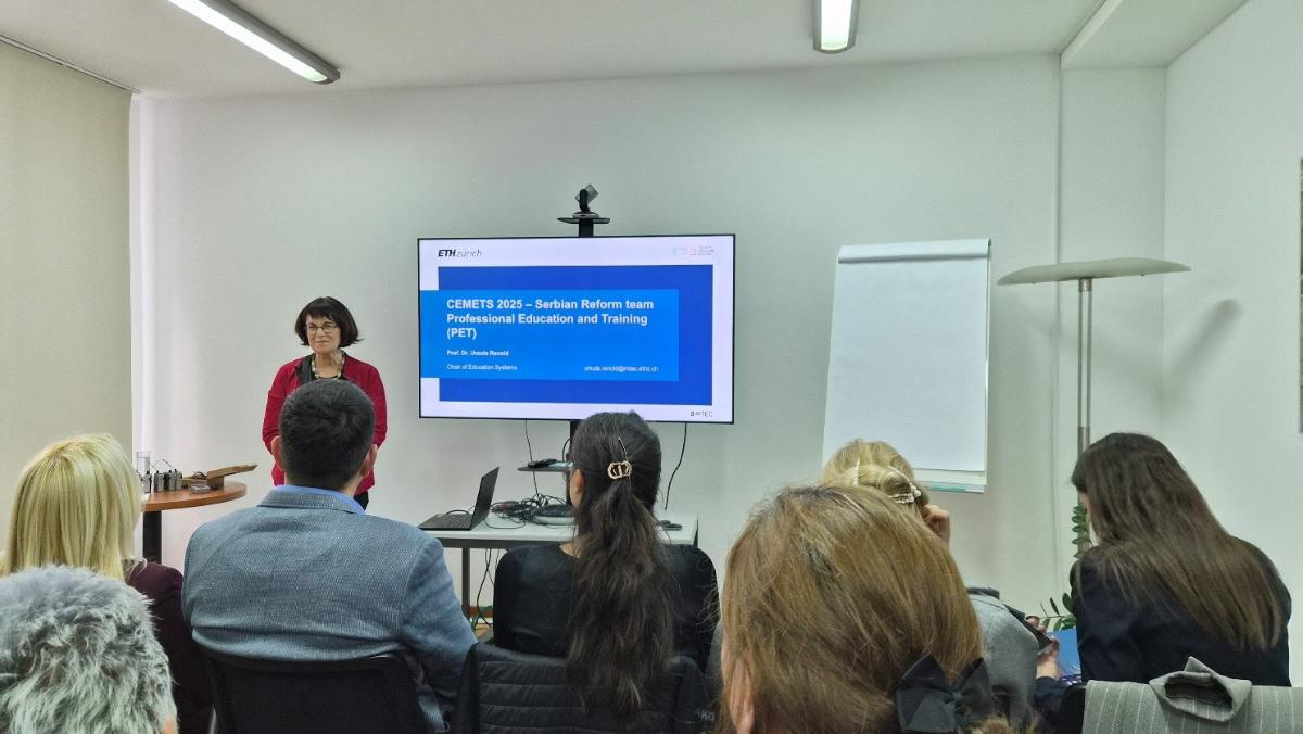 Одржана је тематска сесија посвећена професионалном образовању и обукама (Professional Education and Training – PET), у оквиру посете проф. др Урсуле Ренолд, шефице Катедре за образовне системе на Швајцарском економском институту (D-MTEC) Техничког универзитета у Цириху (ETH Zürich).