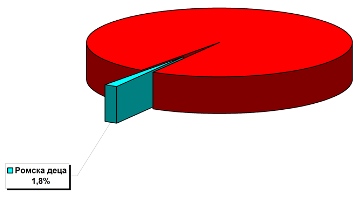 Графички приказ 3. Број ромске деце у односу на укупан број деце у предшколским установама.