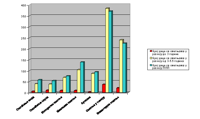 Графички приказ 5. Деца са сметњама у развоју (по врстама сметњи).