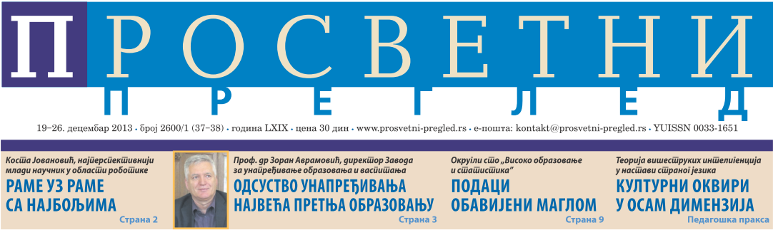 Intervju preuzet iz Prosvetnog Pregleda broj 2600/1 (37–38) od 19–26. decembra 2013.